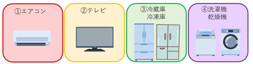 対象となる廃棄物は、「家電4品目」と呼ばれるものです。主な対象品目は、以下の4つと定められています。