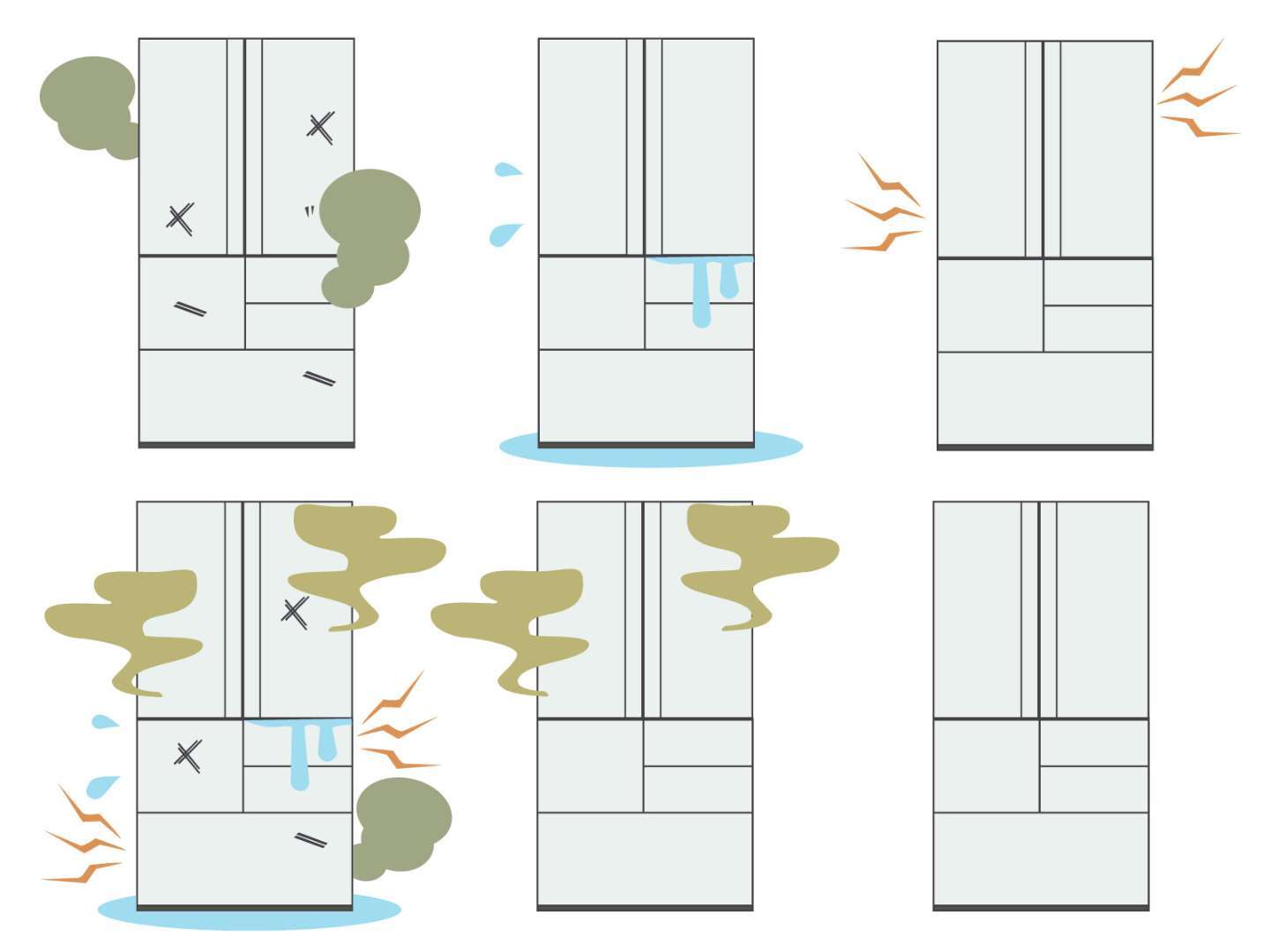 漏電が発生した場合、まずは冷蔵庫の状況を確認しましょう。冷蔵庫が停止したり、異常な音がする場合、すぐに電源を切ることが重要です。冷蔵庫内の食品が傷む前に、適切に対処することが必要です。